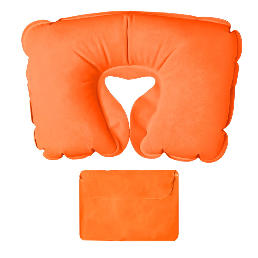 Подушка надувная дорожная WAY в футляре; оранжевый; 43,5х27,5 см; твил