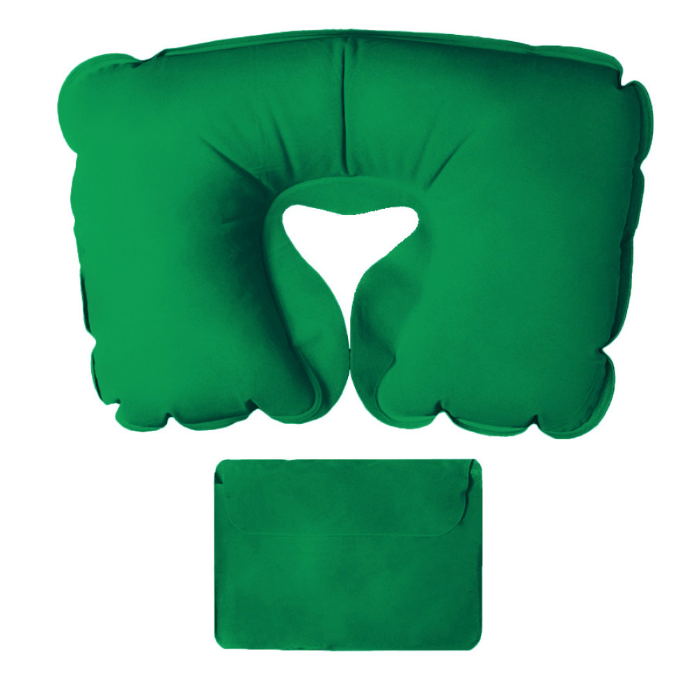 Подушка надувная дорожная WAY в футляре; зеленый; 43,5х27,5 см; твил