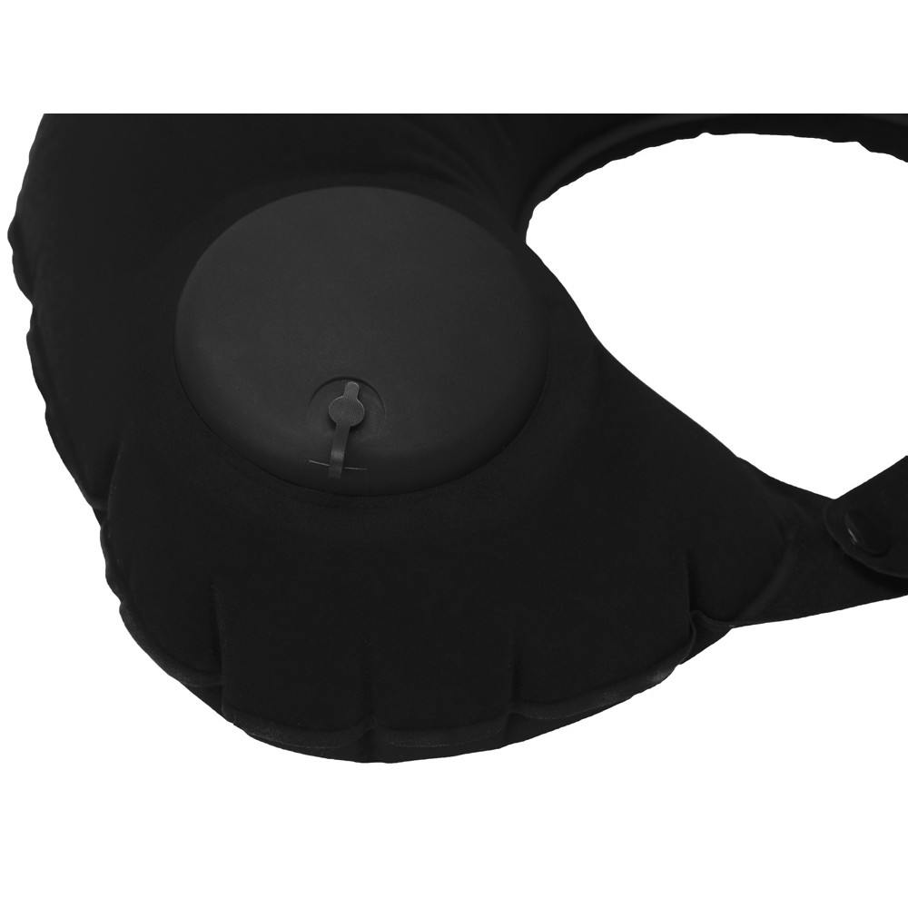 На обратной стороне от насоса-помпы находится клапан для сдувания воздуха из подушки. Двухуровневая фиксация кнопками позволит выбрать наиболее комфортное положение на шее. В комплекте идет чехол на завязках для хранения и удобной транспортировки.