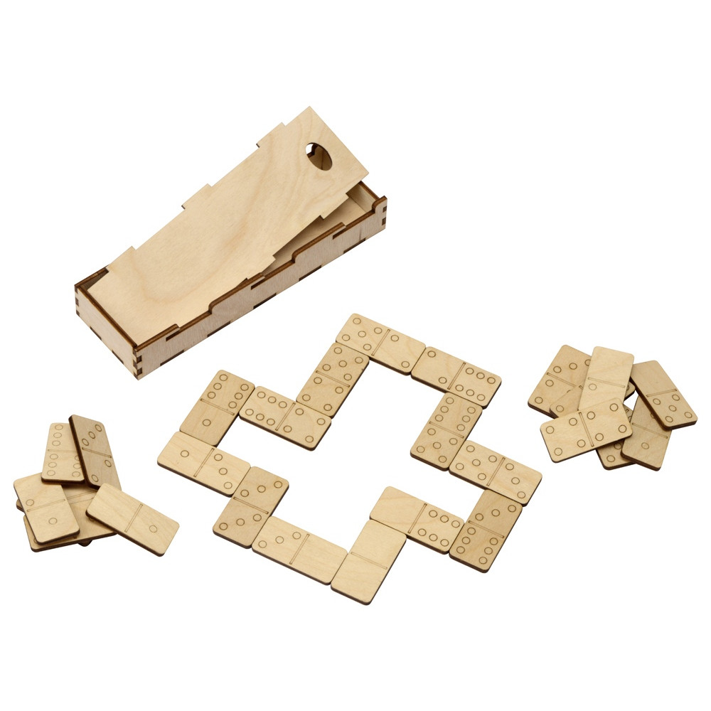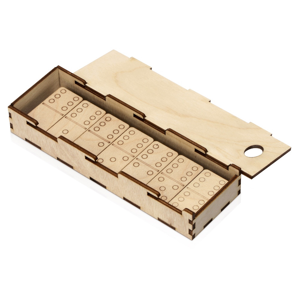 Деревянное домино оживит скучный вечер и сделает дорогу в поезде веселее. Эта простая, но пробуждающая азарт игра объединит за столом любую компанию, а ее правила легко объяснить даже человеку, который ни разу не собирал домино. Оно прекрасно подойдет на роль мерча, ведь изображение можно нанести на крышку коробки, которая имеет большое поле для печати.