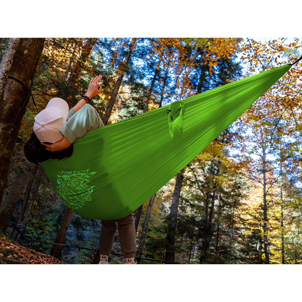 - комплектация: 4 колышка, 2 карабина, 2 веревки, чехол и гамак