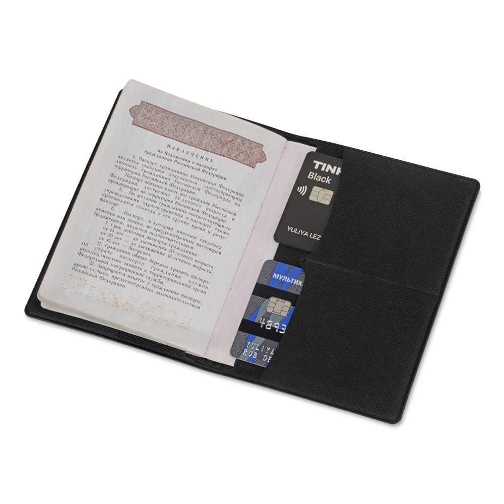 Обложка для паспорта с RFID защитой отделений для пластиковых карт Favor, черная