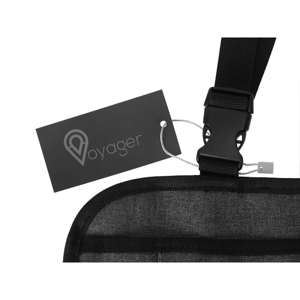 Вертикальный органайзер от Voyager поможет вам удобно разместить необходимые мелочи – теперь все точно будет под рукой! Верхняя часть органайзера фиксируется на подголовнике спинки при помощи ремня на регулируемой застежке, а снизу – веревками.