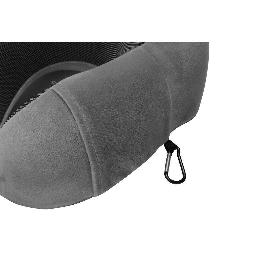 Комфортная подушка для путешествий с эффектом памяти имеет анатомически удобную для шеи форму, которая позволяет разместиться с комфортом во время путешествия. Подушка имеет кармашек, в который можно положить небольшие мелочи, которые сделают путешествие еще удобнее: платок, маску, беруши, наушники, словом, то, что вам может понадобиться во время перелета. Мягкий приятный тактильно материал позволяет расслабиться в объятиях этой подушки, а чехол для переноски и карабин для крепления делают хранение и использование еще удобнее. Застежка на шее позволяет регулировать положение, чехол можно снять и постирать на режиме, который указан на ярлычке. Дышащий материал на внутренней части чехла подушки делает ее идеальным компаньоном для поездок даже в жарком климате.