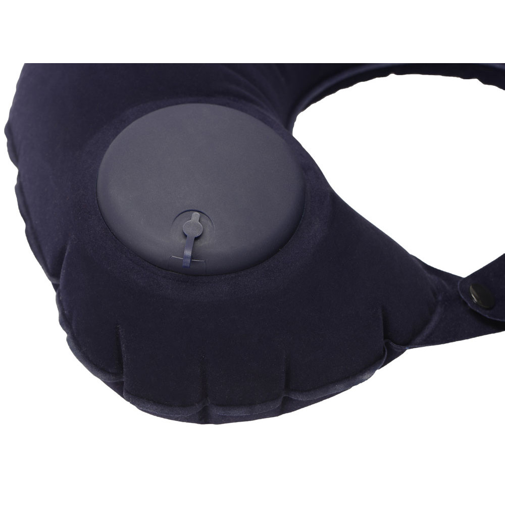 На обратной стороне от насоса-помпы находится клапан для сдувания воздуха из подушки. Двухуровневая фиксация кнопками позволит выбрать наиболее комфортное положение на шее. В комплекте идет чехол на завязках для хранения и удобной транспортировки.