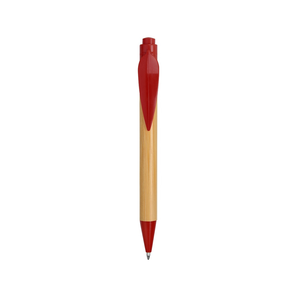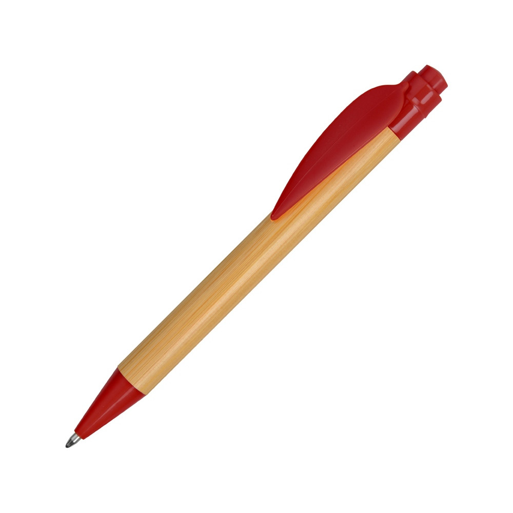 Ручка шариковая Листок, бамбук/красный