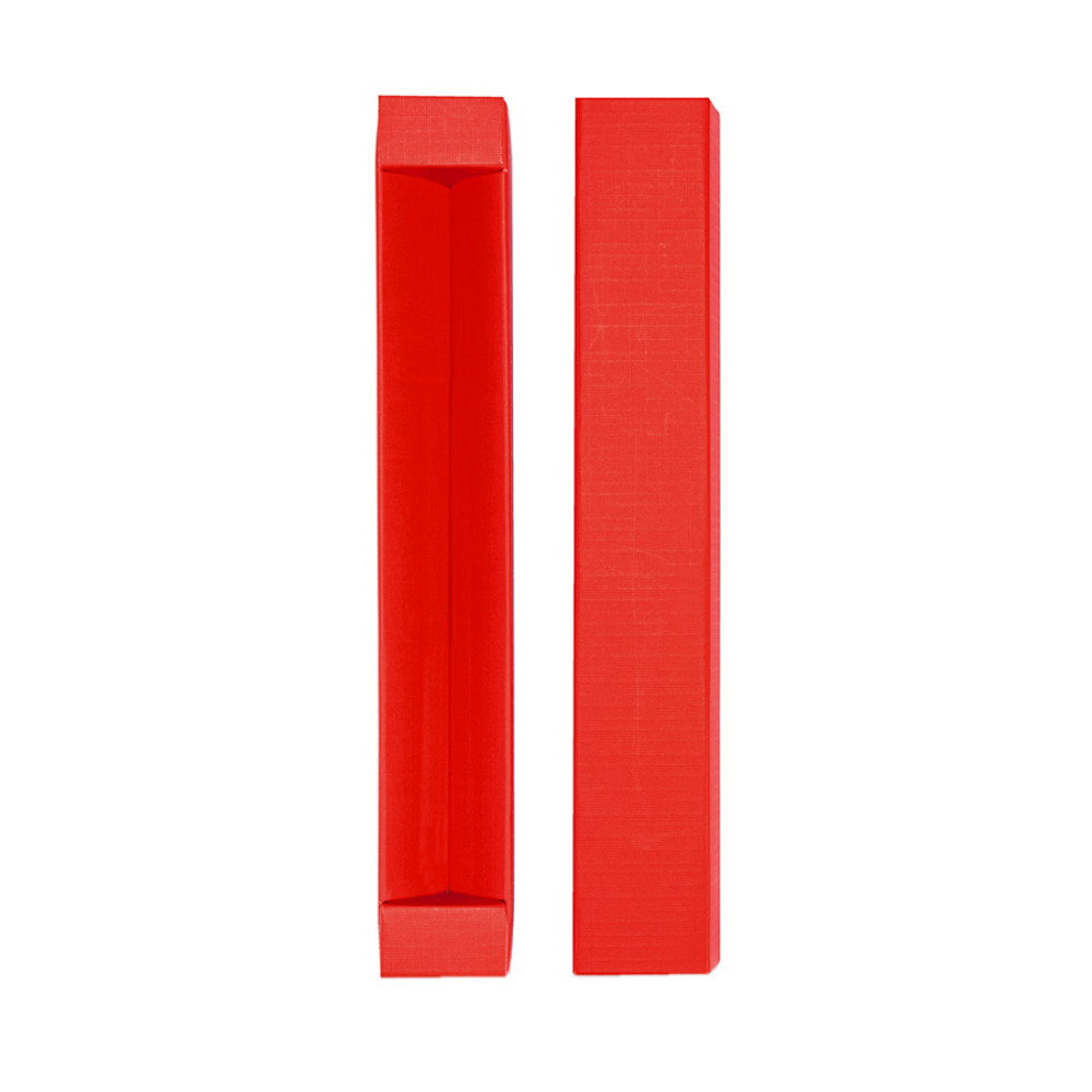 Футляр из дизайнерского картона с тиснением и ламинацией. Подходит для ручек и карандашей длиной до 145 мм и диаметром до 12 мм. Цвет, близкий к Pantone 1797C.