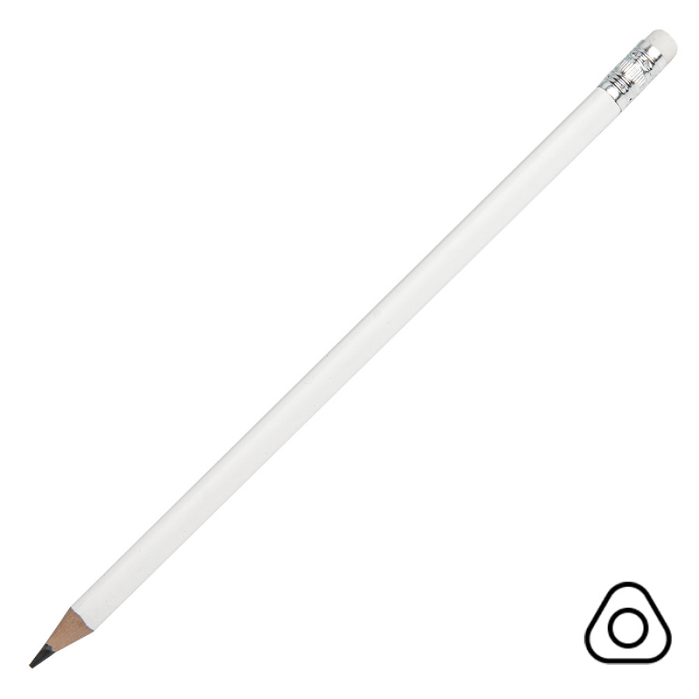 Пластиковый чернографитный карандаш с повышенными чиночными свойствами. Ластик из TPR, феррул алюминиевый. Если пластиковый карандаш ломается, на корпусе не останется острых сколов. • Цвет близкий к Pantone White• Твердость HB • Трехгранный матовый пластиковый корпус • Прочный грифель 2.0 мм • Оснащен ластиком в цвет корпуса • Феррул - серебристый металлик • Легко затачивается