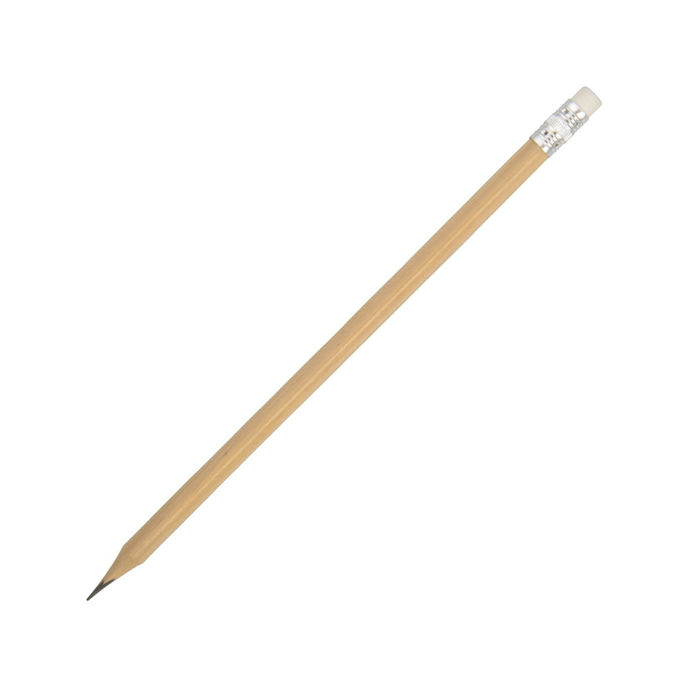 Трехгранный карандаш с ластиком будет очень полезным и недорогим подарком. Карандаш заточен.