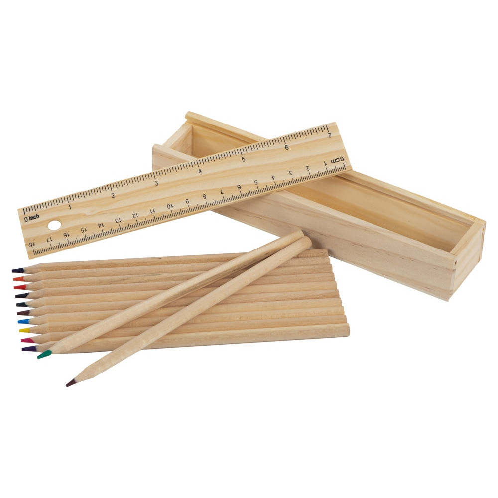 Набор из 12 карандашей в коробке с линейкой станет стильным и экологичным сувениром для людей творческих профессий.