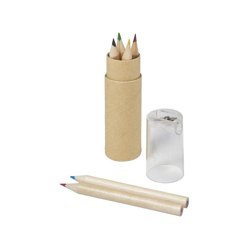 Набор содержит 6 цветных карандашей и футляр с крышкой-точилкой. Отличный вариант для создания оригинального промосувенира. Крышка позволит аккуратно собрать стружку в процессе подтачивания карандашей.