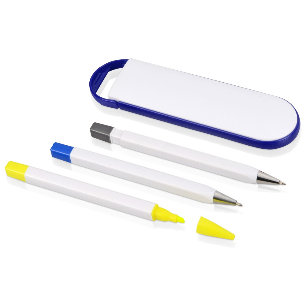 Набор Квартет: ручка шариковая, карандаш и маркер, белый/синий