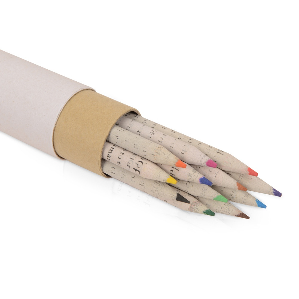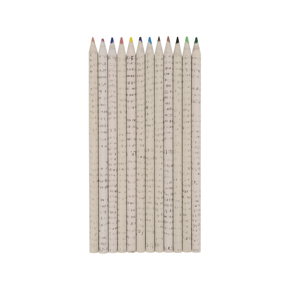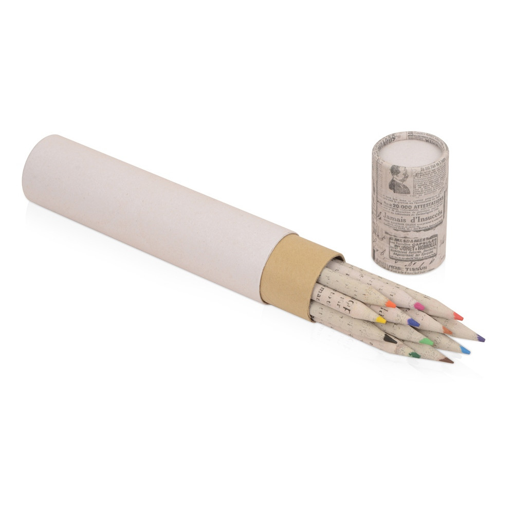 Набор цветных карандашей, выполненных в оригинальном корпусе из имитации газетной бумаги. Благодаря пеналу в форме тубуса удобно хранить или брать с собой. Набор состоит из карандашей 12 цветов.