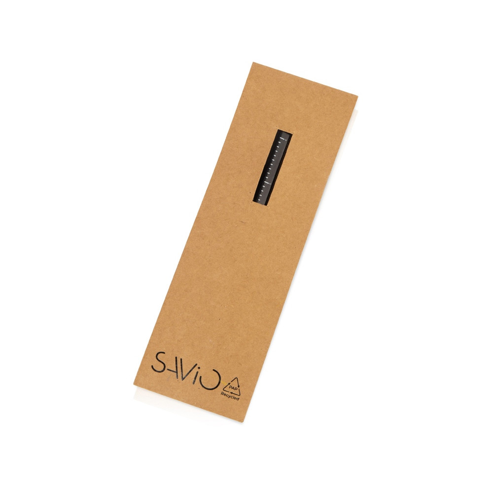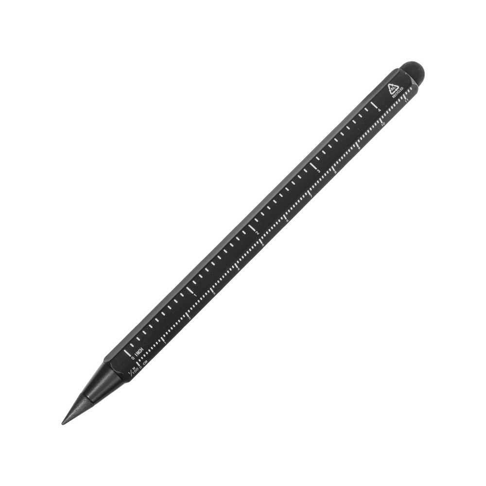 Карандаш изготовлен из переработанного алюминия. В отличие от обычных карандашей его не нужно точить, и он не пачкает руки.