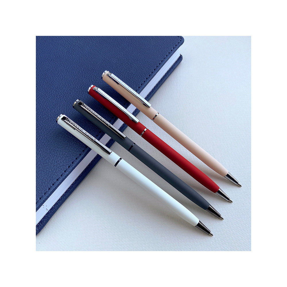 Автоматическая металлическая ручка Bruno Visconti серии Palermo однотонного цвета порадует любителей всего изящного и утонченного. Покрытие корпуса Soft Touch гарантирует дополнительный комфорт в работе с ней. Стержень легко выдвигается благодаря поворотному механизму. Синие пигментные чернила Dokumental (Германия) и пишущий узел Premec (Швейцария) обеспечивают качественное и мягкое письмо.
