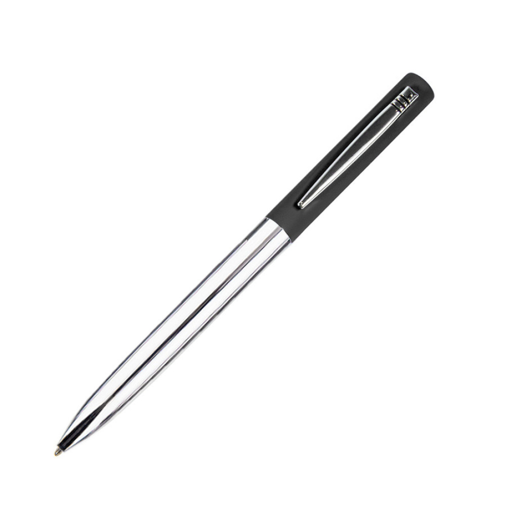 • Pantone, близкий к Black С.• Металлический корпус и клип. • Поворотный механизм подачи стержня.• Пулевидный пишущий узел 1.0 мм.• Длина линии письма 1000-1200 м.• Чернила Dokumental, цвет синий.• Сменный стержень Cross type.• Угол поворота корпуса: 270°.• Виды нанесения: лазерная гравировка, тампопечать.. Внимание: результат гравировки зависит от настроек оборудования.