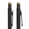• Pantone, близкий к Black• Размер 140*10 мм• Корпус из алюминия с покрытием soft touch• Зеркальная подложка в цвет стилуса• Яркий стилус. Pantone, близкий к Gold• Металлический клип-прищепка черного цвета• Носик и кнопка из пластика• Нажимной механизм подачи стержня• Пулевидный пишущий узел 1.0 мм• Длина линии письма 1000 м • Чернила Dokumental. Цвет чернил синий• Сменный стержень Parker type
