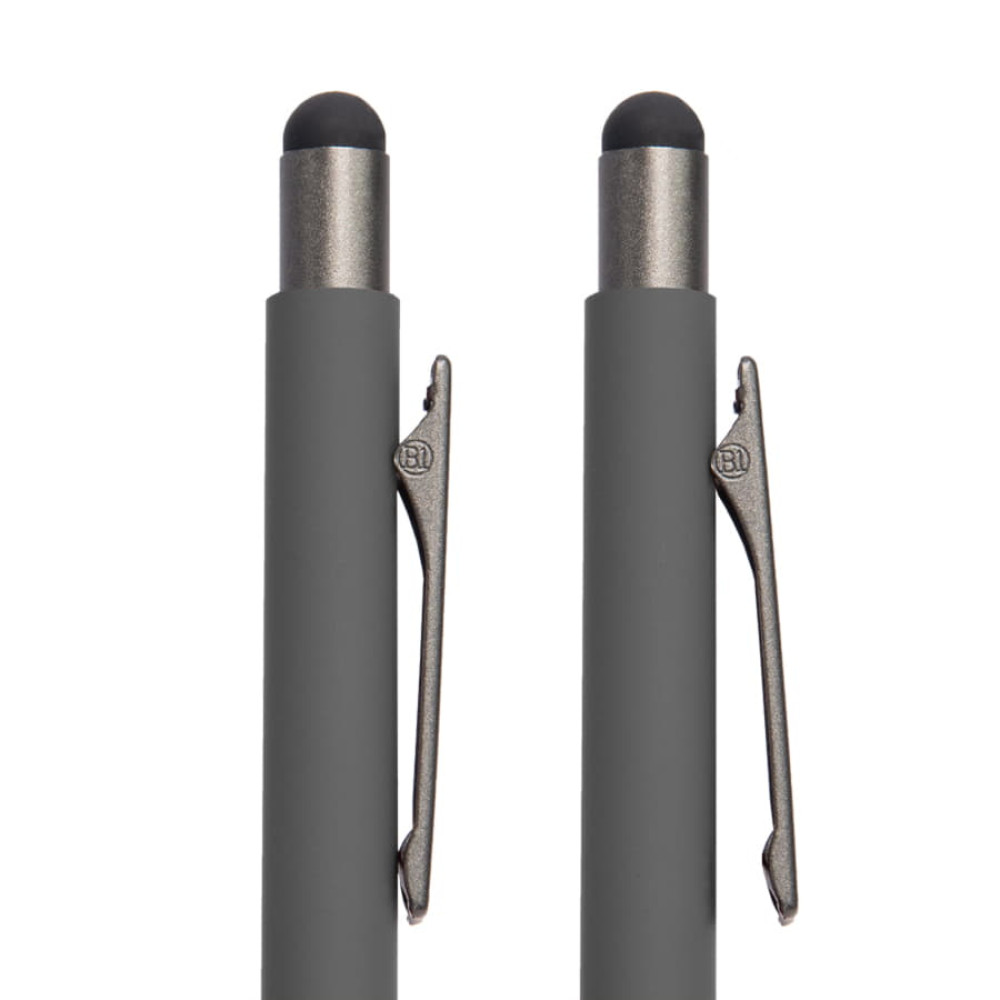 Стиль, изящность линий и качество – 3 основных компонента, на которые была сделана ставка при разработке данной модели ручки. Благодаря специальной грип зоне из натуральной пробки ручку приятно и удобно держать в руке. Чернила легко ложатся на бумагу и быстро высыхают. Надежный стальной пищущий узел с шариком из карбида вольфрама – гарантия долгой службы. Дизайн ручки сочетает в себе сдержанность со скрытой внутренней энергией. А корпус и эксклюзивный клип идеально подходят под персонализацию. • Pantone, близкий к Cool Gray 8 C• Размер 140*10 мм• Корпус из алюминия с покрытием soft touch• Стилус черного цвета• Металлический клип-прищепка серого цвета • Пластиковые носик и кнопка в цвет клипа• Грип из натуральной пробки• Нажимной механизм подачи стержня• Пулевидный пишущий узел 1.0 мм• Длина линии письма 1000 м • Чернила Dokumental. Цвет чернил синий• Сменный стержень X-20• При гравировке вскрывается натуральный цвет алюминия, который может быть либо более белый, либо более серого оттенка