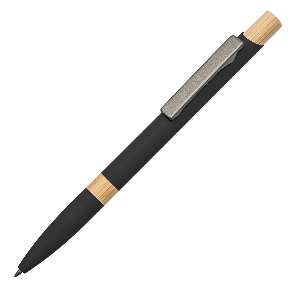 Экстравагантная модель ручки FRESCO. Корпус алюминиевый с матовым покрытием soft touch - ручку приятно держать в руке. Металлический клип-прищепка является эксклюзивом бренда В1. Отделка из натурального бамбука добавляет модели оригинальность. Кнопка нажимного механизма оптимального диаметра удобна для подушечки пальца. Визуально ручка выглядит очень благородно. В использовании гарантированно комфортна. • Цвет, близкий к Pantone Black• Размер φ 10 x 140 мм• Корпус из алюминия с покрытием soft touch• Металлический клип-прищепка• Отделка - бамбук• Нажимной механизм подачи стержня• Пулевидный пишущий узел 1.0 мм• Длина линии письма 800-1000 м• Чернила Dokumental, цвет чернил синий• Сменный стержень Parker type• Виды нанесения: гравировка