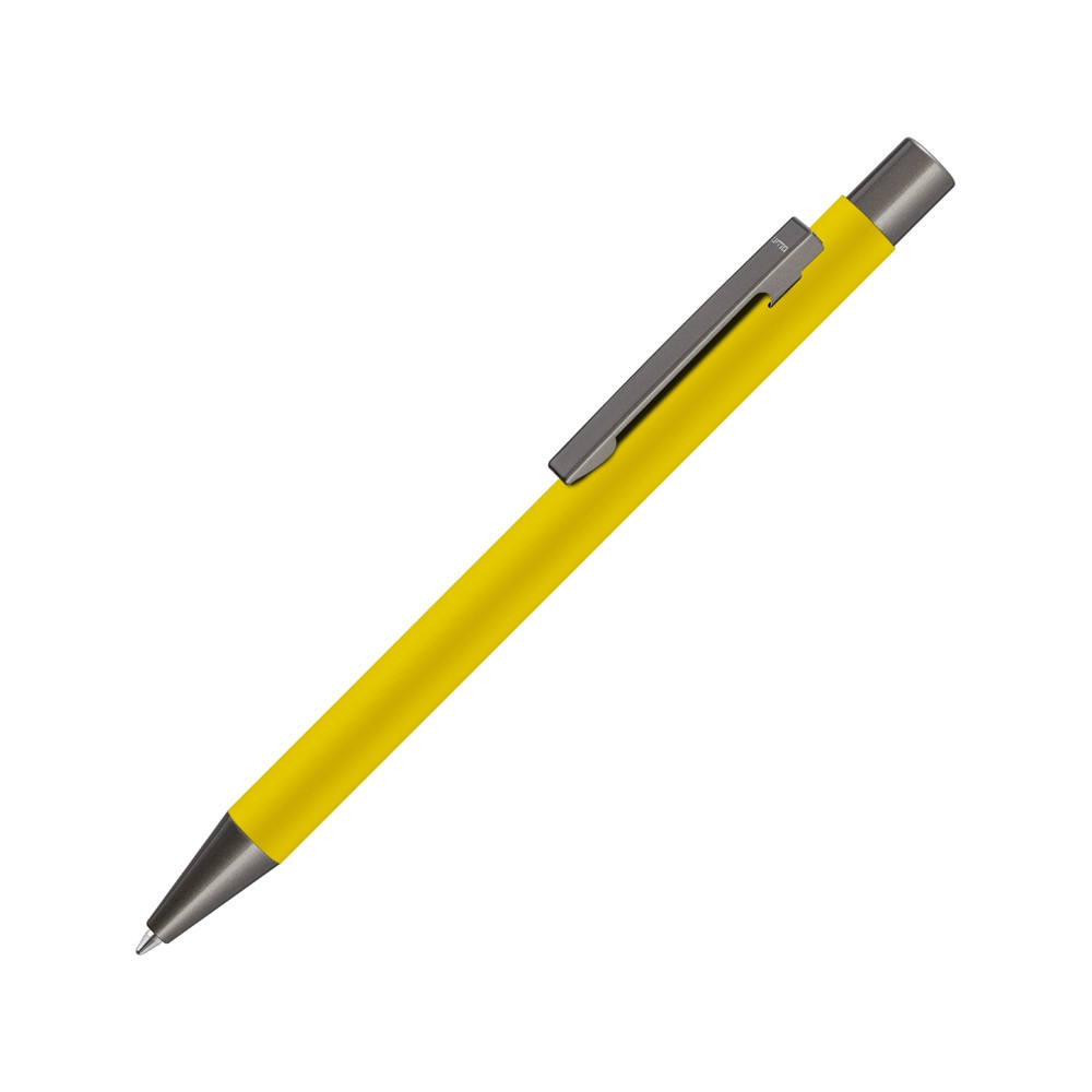 Ручка шариковая UMA STRAIGHT GUM soft-touch, с зеркальной гравировкой, желтый