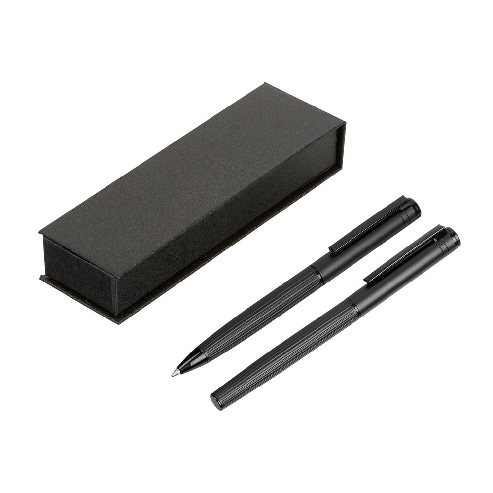 Набор из 2 элегантных классических ручек в стильном исполнении total black станет прекрасным подарком человеку, который ценит эстетичные и функциональные аксессуары.