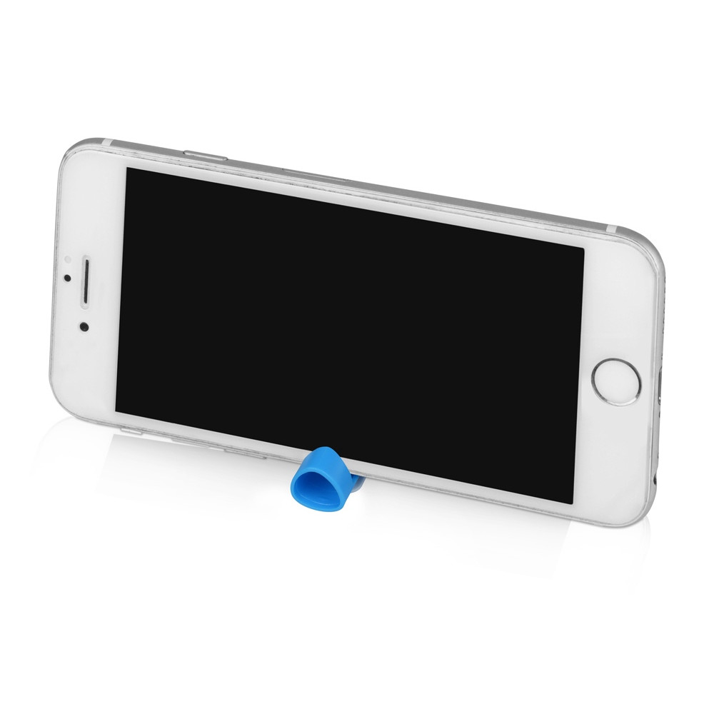 Ручка пластиковая шариковая трехгранная Nook с подставкой для телефона в колпачке, голубой/белый