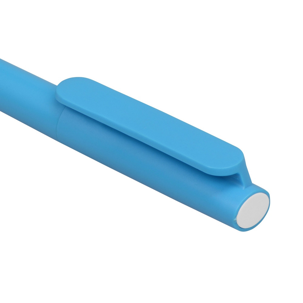 Пластиковая ручка с широким клипом, который идеально подходит под нанесение. Изюминкой этой ручки является защелка белого цвета в верхней части, контрастирующая с полностью цветным корпусом.