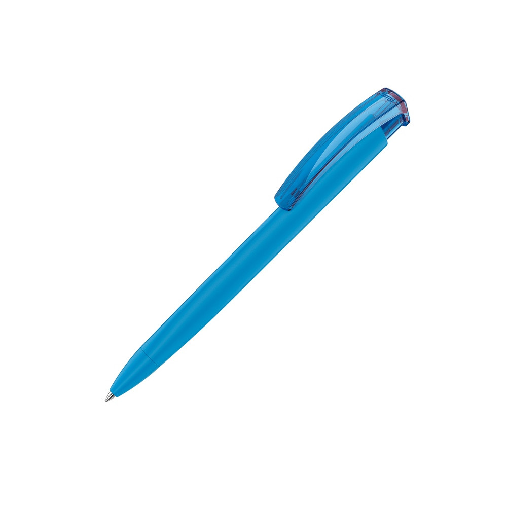Ручка шариковая трехгранная UMA TRINITY K transparent GUM, soft-touch, голубой