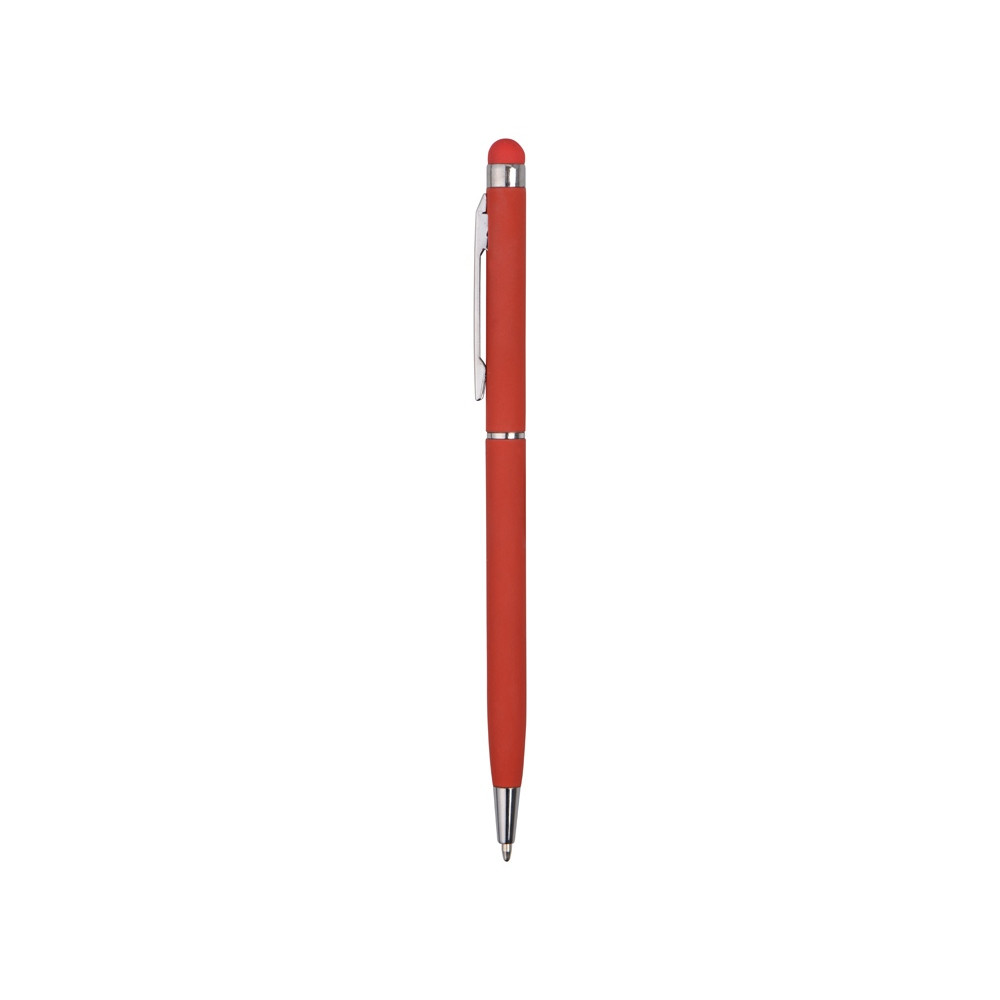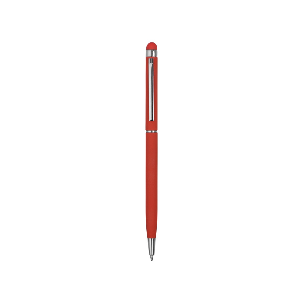 Тонкая металлическая шариковая ручка с поворотным механизмом и стилусом. Приятное на ощупь, не скользящее покрытие софт тач делает письмо особенно комфортным. Функциональный и стильный аксессуар станет отличным подарком.