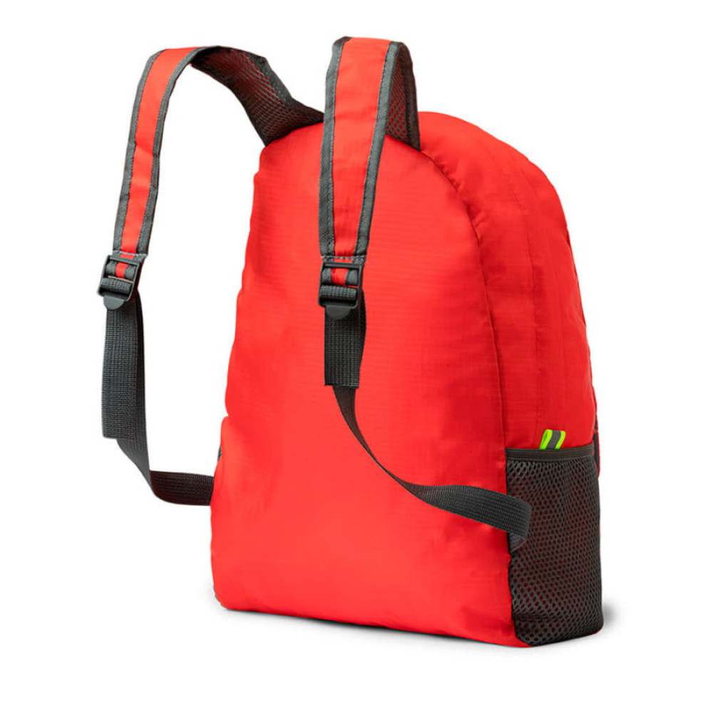 Складной рюкзак из прочного материала рипстоп. 2 отделения на молнии и регулируемые лямки. Сетчатые боковые и небольшие складывающиеся карманы .