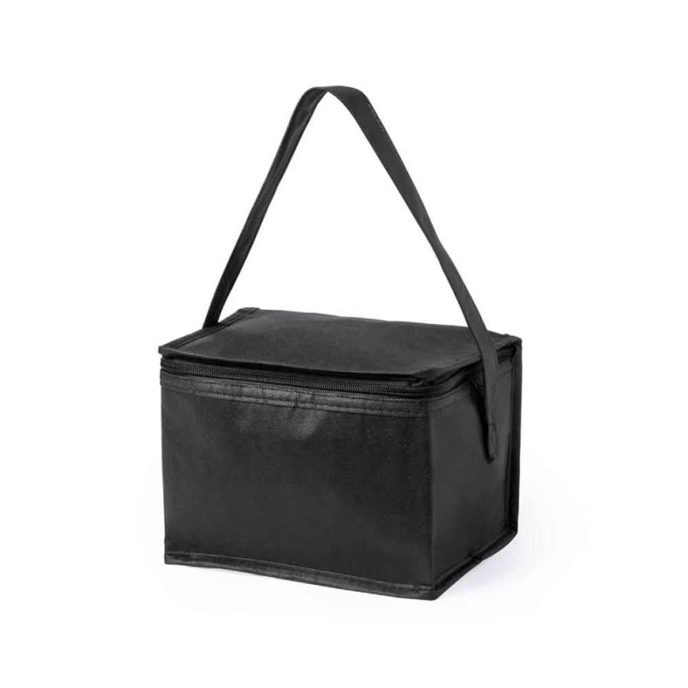 Сумка-холодильник на 6 банок из прочного нетканого материала.Внутри с алюминиевым покрытием.С застежкой-молнией и ручкой для переноски соответствующего цвета.