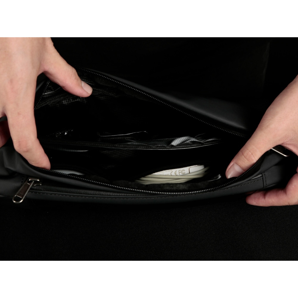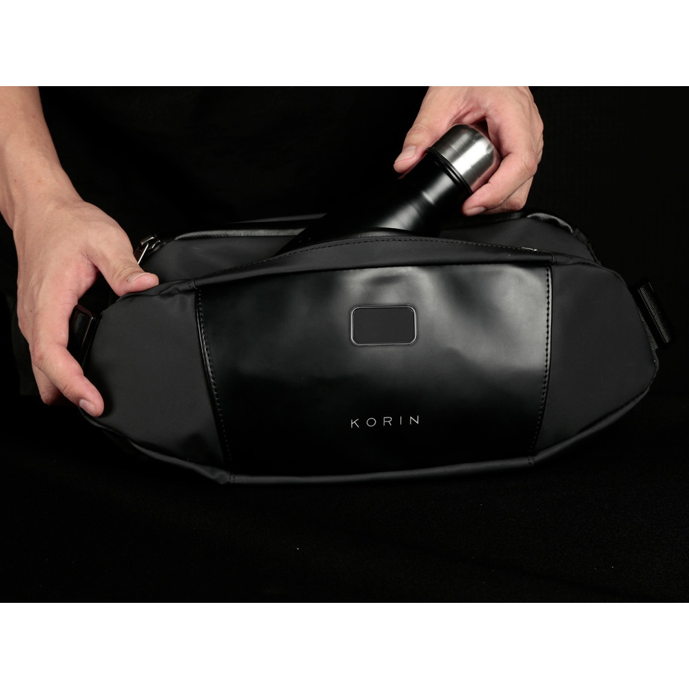 Сумка-слинг- модный и стильный аксессуар. Выполнена из водостойкого материала с водонепроницаемыми молниями. Отделка из экокожи. Расширяющийся водостойкий карман для хранения бутылки или зонта. Потайной карман сзади на магните. Лямка из нескользящего материала 130 см на магнитной застежке. Поставляется в коробке с ручкой.