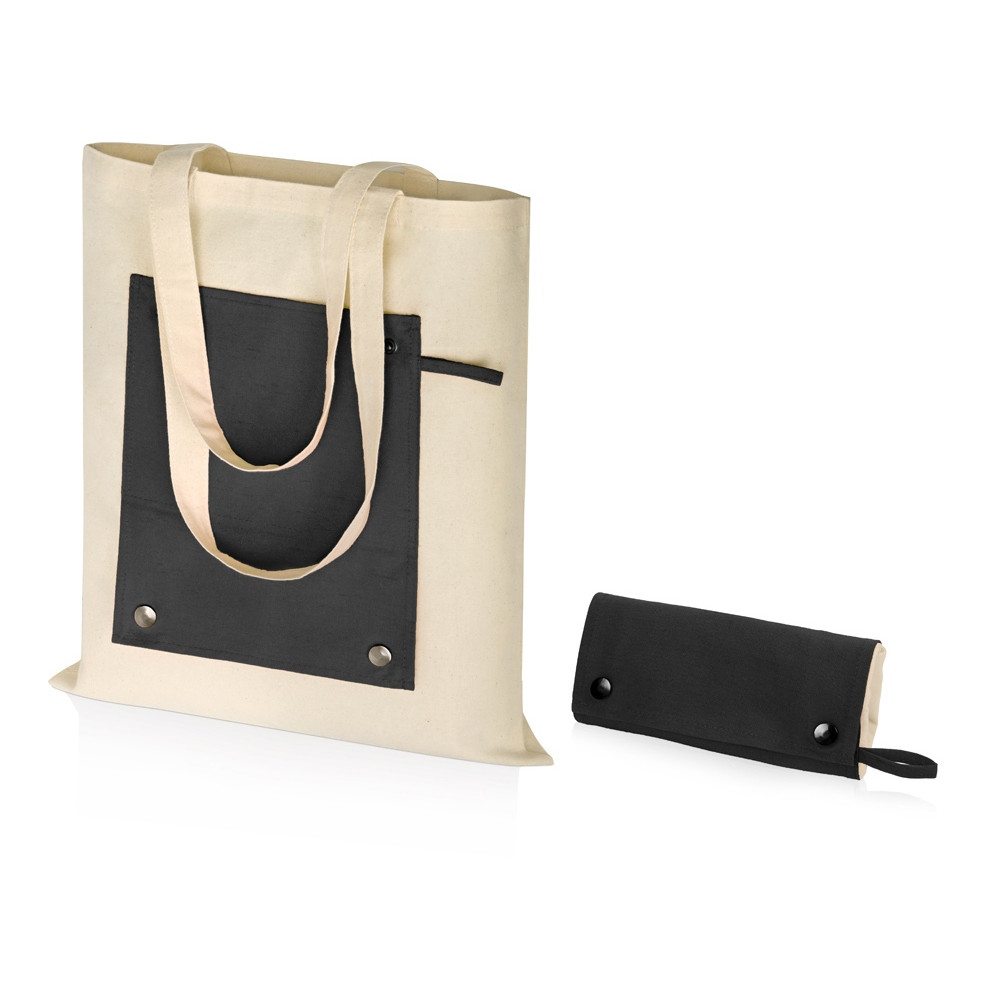 Складная хлопковая сумка для шопинга Gross с карманом, черный