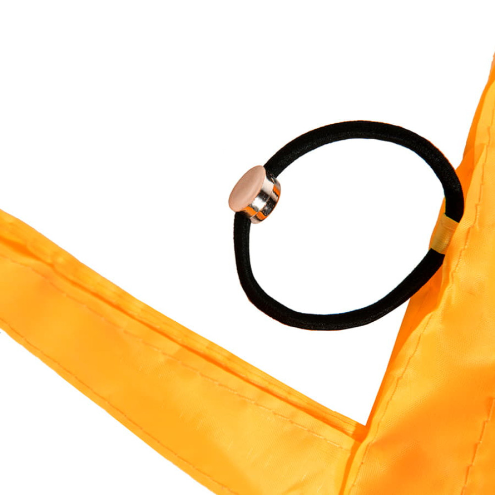 Цвет, близкий к Pantone Orange 21 C Легкая и практичная складная сумка для покупок из мягкого полиэстера 190Т. Удобно фиксируется прочной резинкой с пластиковым декором. Незаменимая маленькая помощница освободит ваши руки. Длинные ручки 52 см позволяют повесить сумку на плечо.