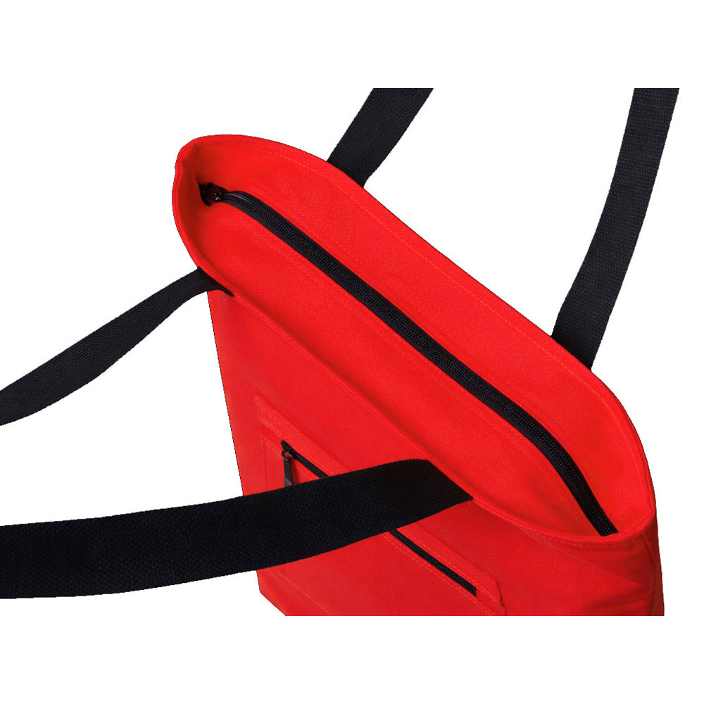 Сумка на молнии Zipper Neo из хлопка 280 г c карманом на молнии спереди, красный