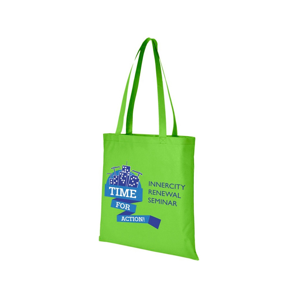 Отличный промо-сувенир для любой акции. На нетканую основу из полипропилена отлично осуществляется нанесение термотрансфера. Большой объем, прочность и компактность – залог частого использования сумки. Высота ручек 32 см.