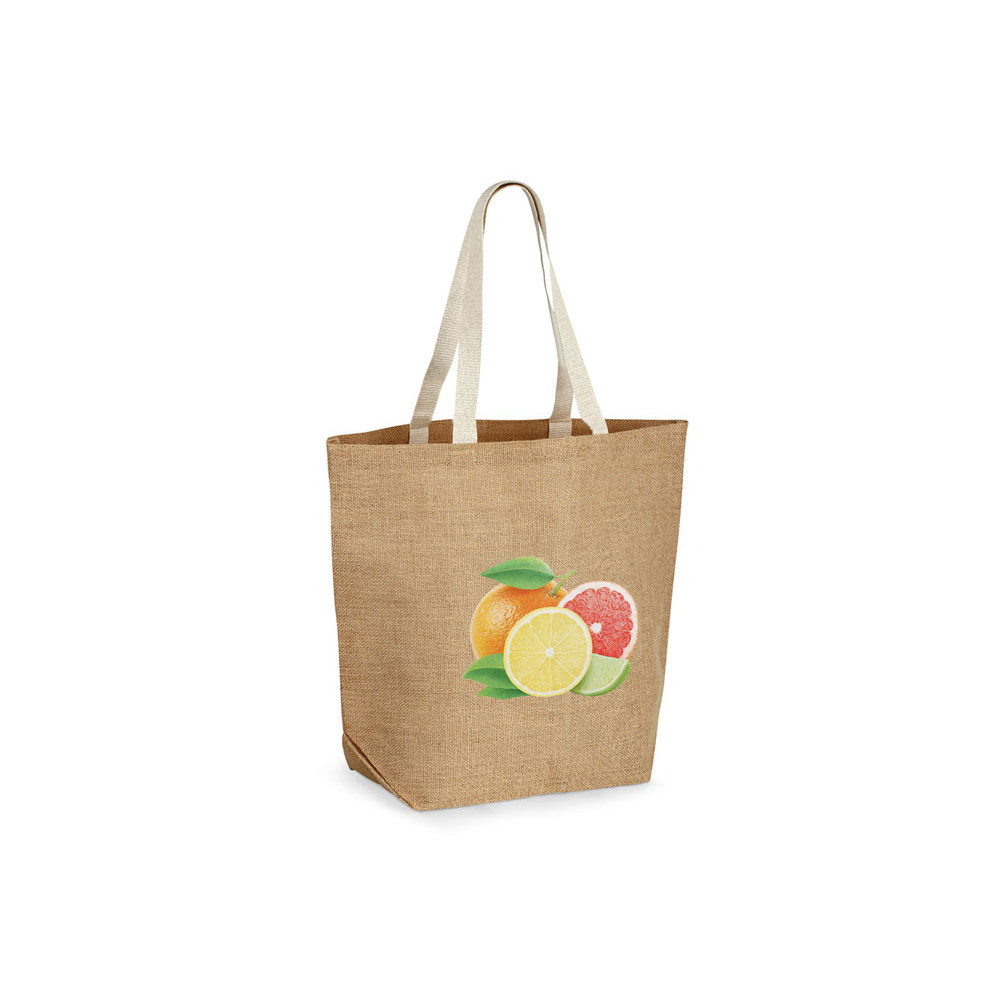 Джутовая сумка для покупок (360 г/м2) , ламинированная внутри, с ручками длиной 60 см.