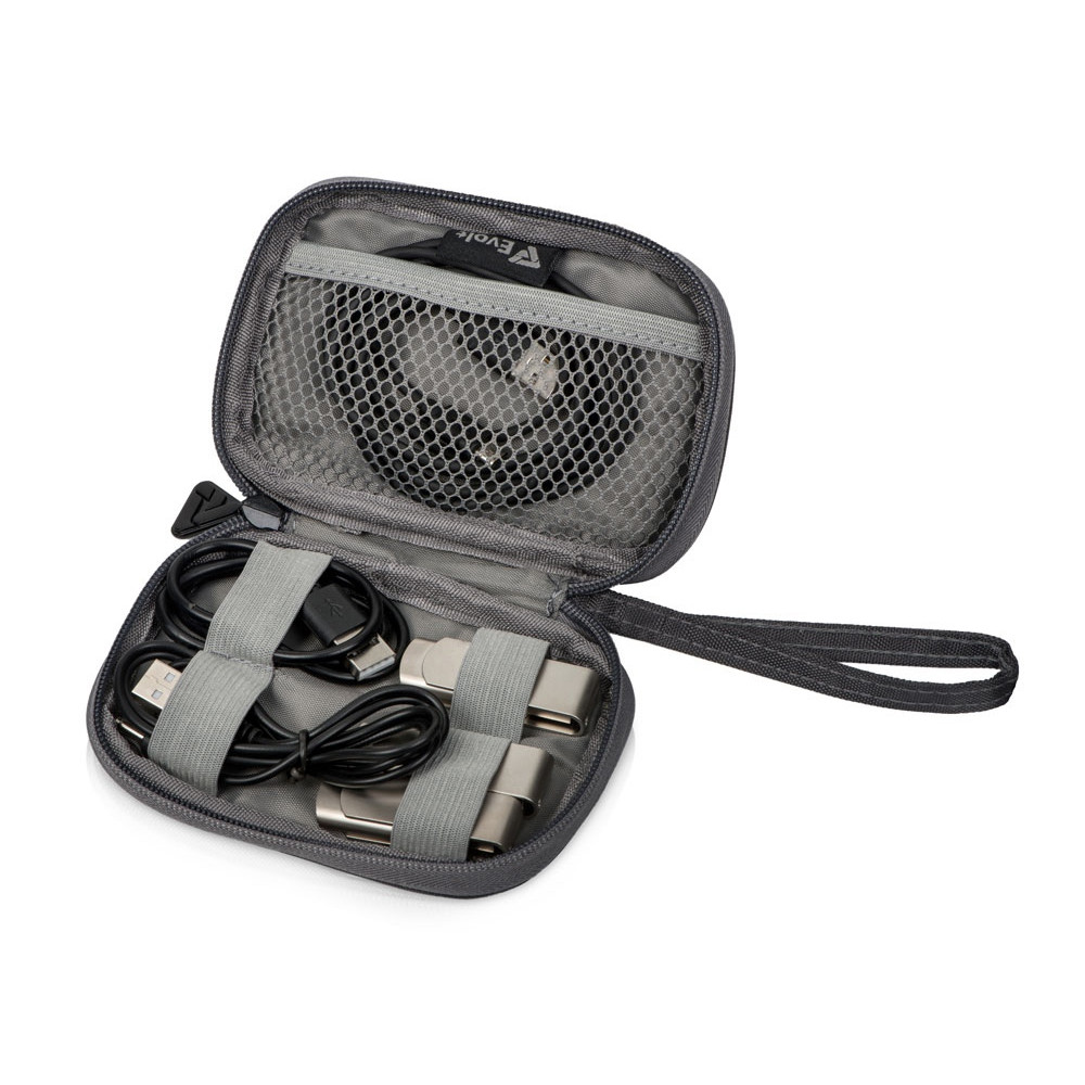 • Сетчатый карман и отсеки на резинке позволяют аккуратно распределить провода так, чтобы они не спутывались и были легкодоступны в любой момент