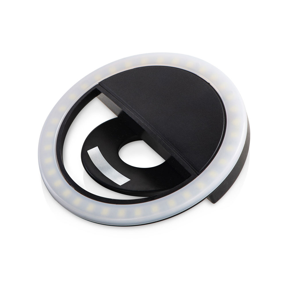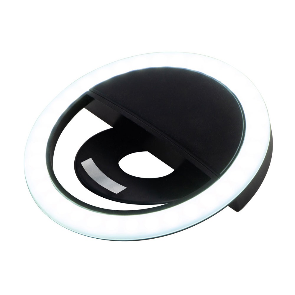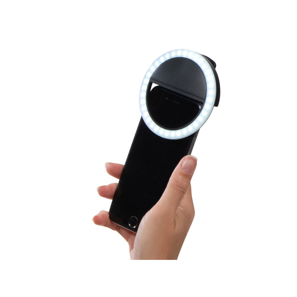 Световое кольцо Glitter делает ваши селфи- фото и видео более качественными за счет дополнительного освещения. Подсветка представлена нейтральным белым цветом от 48 светодиодов с 3 режимами яркости. Время непрерывного свечения - до 2 часов. Можно быстро зарядить от любого пауэрбэнка по micro USB. Благодаря удобной конструкции селфи-кольцо устанавливается и снимается за секунду. На корпусе имеются силиконовые защитные полоски, чтобы исключить даже малейшие повреждения экрану смартфона.