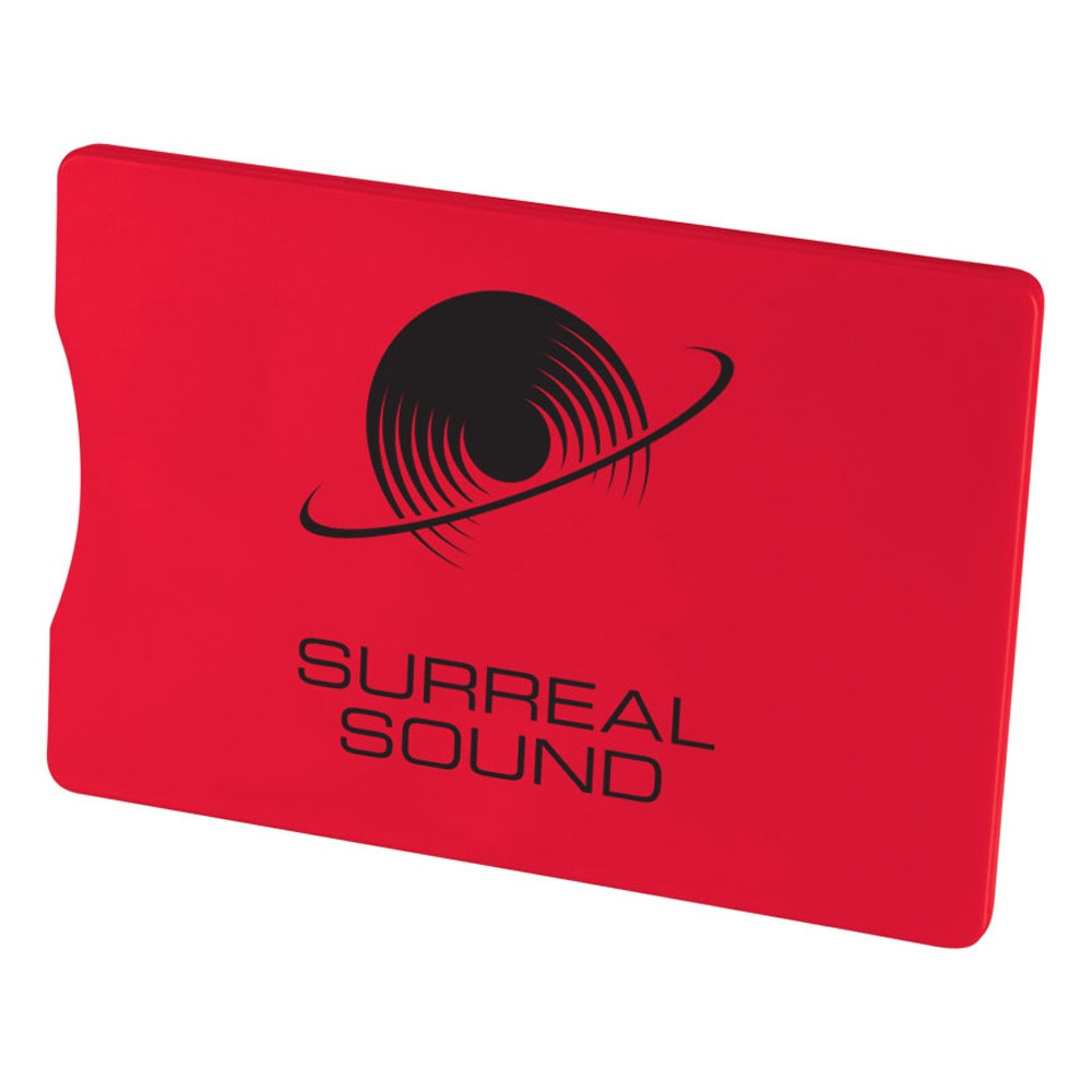 Защитный RFID чехол для кредитной карты. Благодаря RFID защите чехол надежно защитит вашу карту от несанкционированных транзакций. Чехол достаточно тонкий, так что вы можете держать его в бумажнике, сумочке или в кармане. Большое место для нанесения. Пластик.
