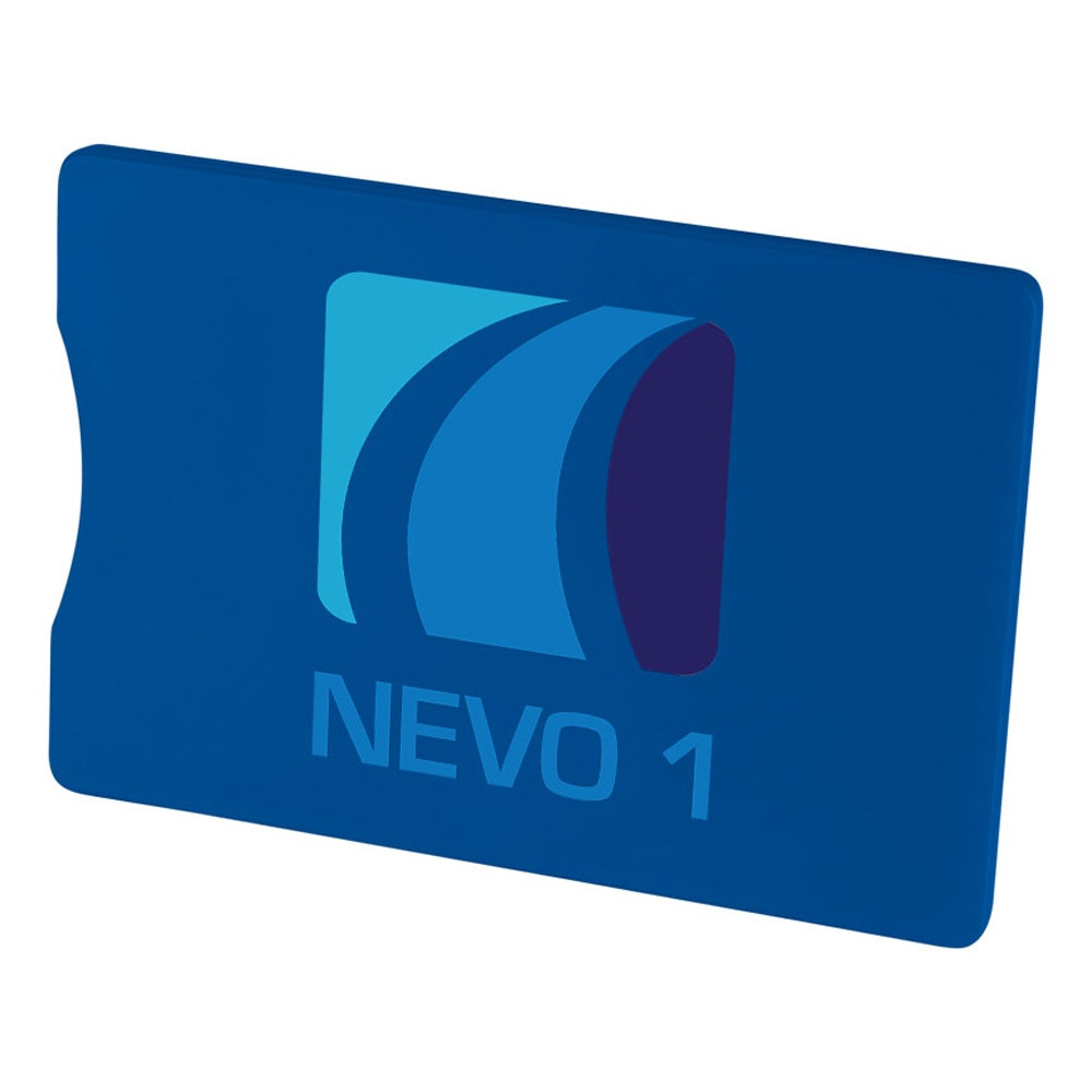 Защитный RFID чехол для кредитной карты. Благодаря RFID защите чехол надежно защитит вашу карту от несанкционированных транзакций. Чехол достаточно тонкий, так что вы можете держать его в бумажнике, сумочке или в кармане. Большое место для нанесения. Пластик.