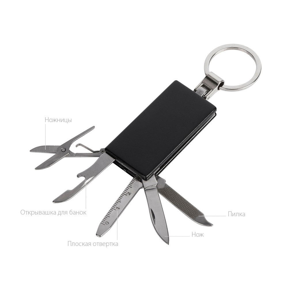 В комплекте нож, ножницы, пилка, плоская отвертка, открывашка для банок.