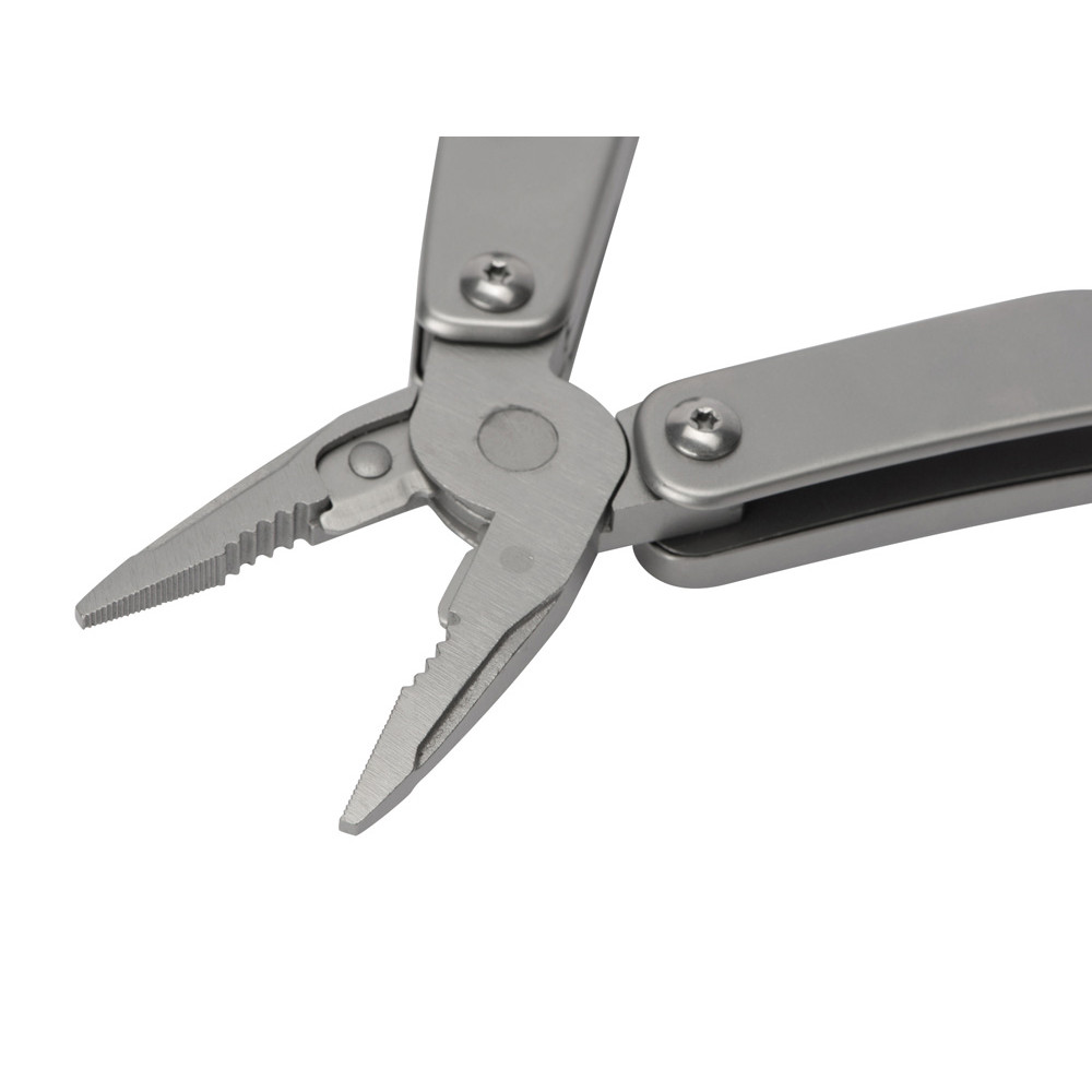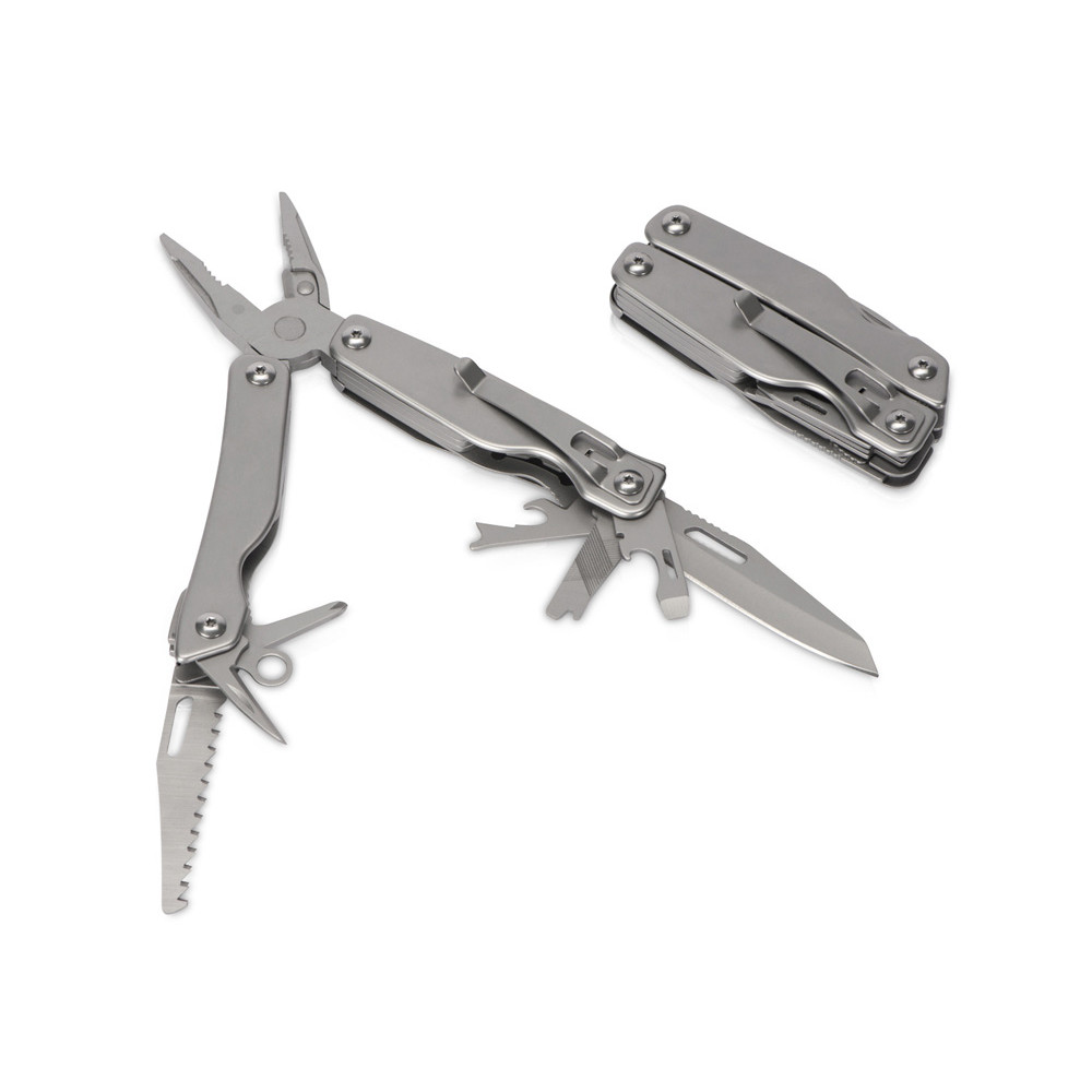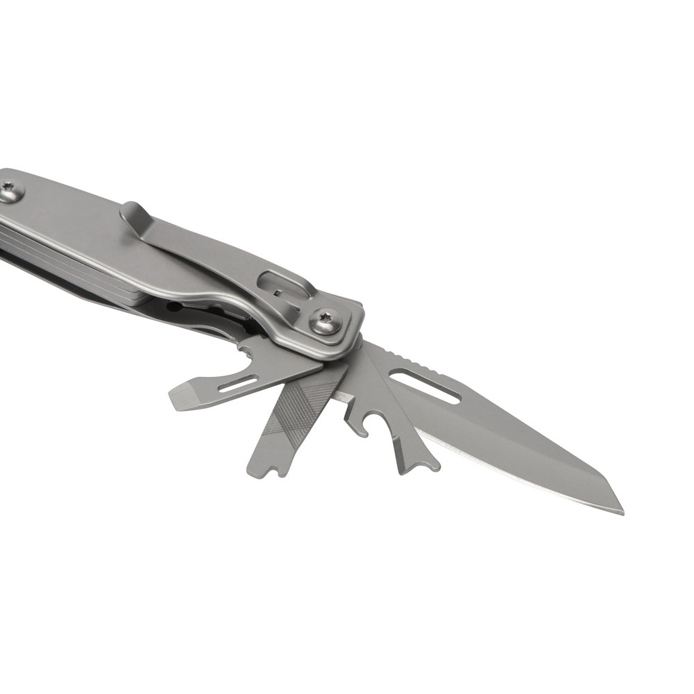 Мультитул-пассатижи Combo бренда roq выполнен из нержавеющей стали. Матовое покрытие позволяет сделать брендирование более заметным. Чтобы не потерять инструмент, его можно прикрепить клипом за ремень или подвесить за складное кольцо. Поставляется в индивидуальной коробке вместе с чехлом.