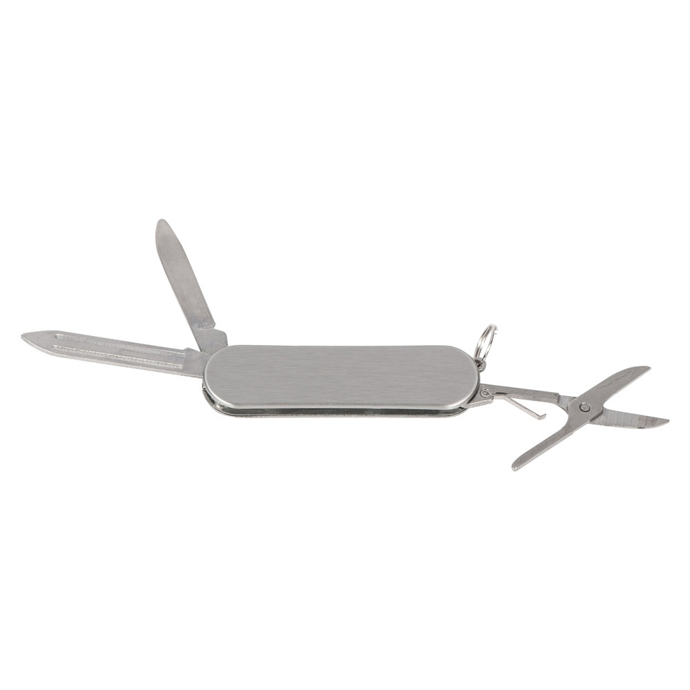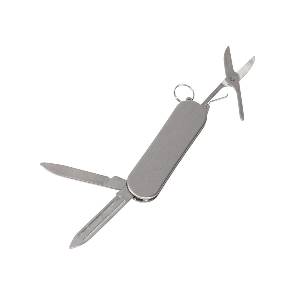 Компактный складной мультитул, в котором несмотря на его маленький размер, целых три функции: нож, пилка для ногтей, ножницы. Корпус и функциональные части выполнены из нержавеющей стали. Небольшой вес позволяет использовать в качестве брелка, чтобы он всегда сопровождал вас и мог прийти на помощь в любой ситуации.