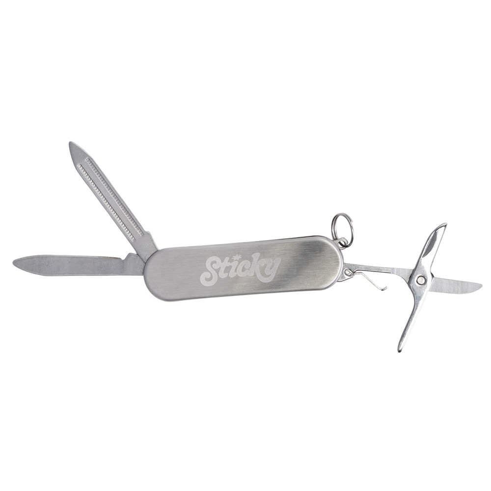 Компактный складной мультитул, в котором несмотря на его маленький размер, целых три функции: нож, пилка для ногтей, ножницы. Корпус и функциональные части выполнены из нержавеющей стали. Небольшой вес позволяет использовать в качестве брелка, чтобы он всегда сопровождал вас и мог прийти на помощь в любой ситуации.