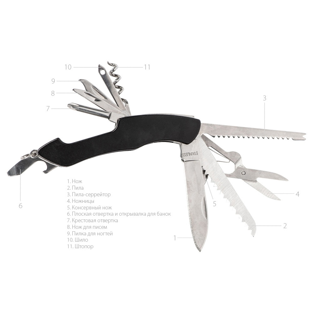 Мультитул-складной нож Demi 11-в-1, серебристый/черный