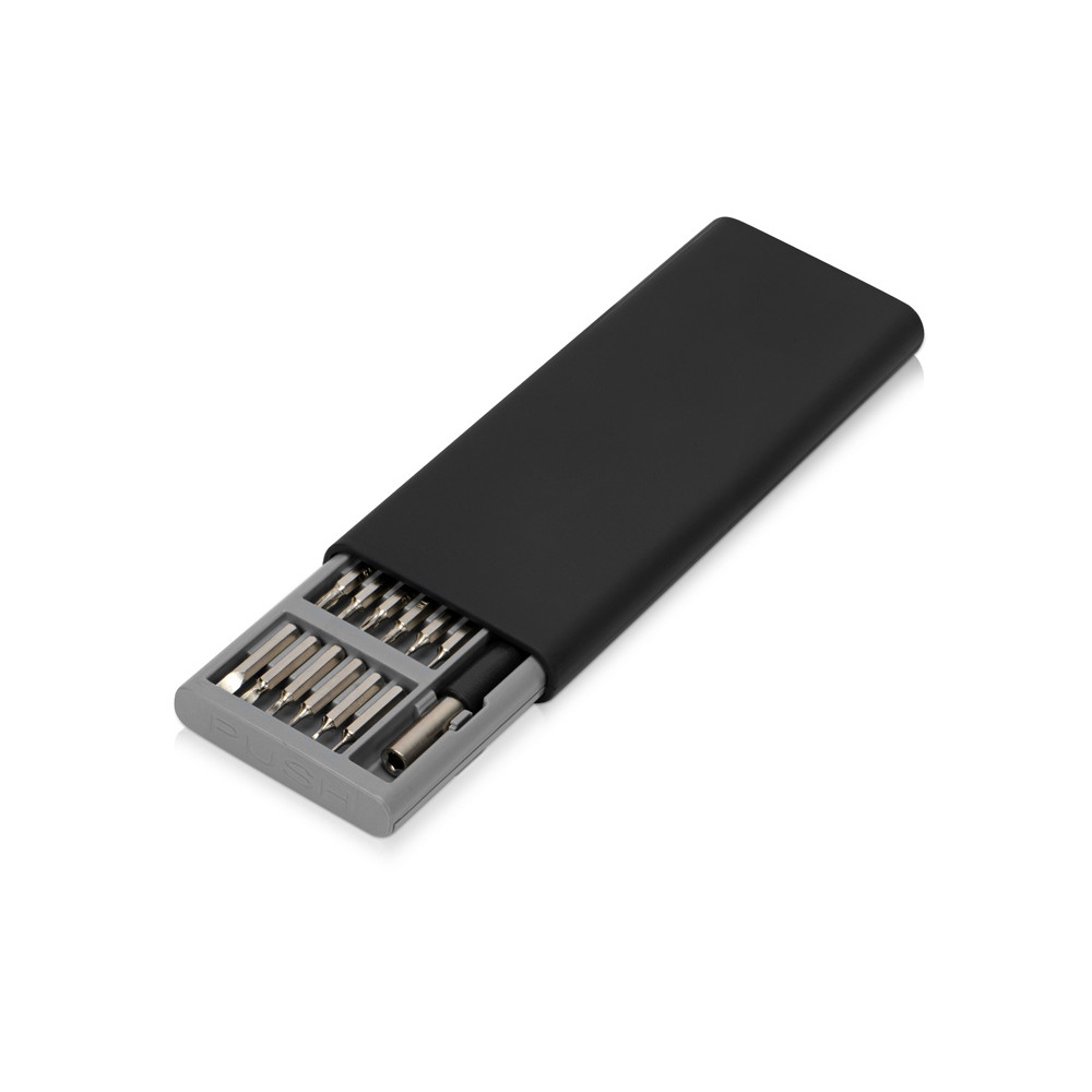 Отвертка с набором сменных насадок — лаконичная замена громоздкому комплекту отверток. 24 насадки для самых разных типов крепежа компактно хранятся в небольшом футляре, который удобно носить с собой. Замена насадки занимает считанные секунды. Минималистичный строгий дизайн превращает набор в функциональный бизнес-подарок.