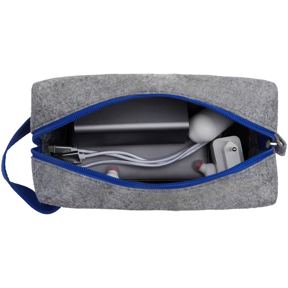 Органайзер для электроники и проводов Felt из RPET-фетра с ручкой, серый с синим