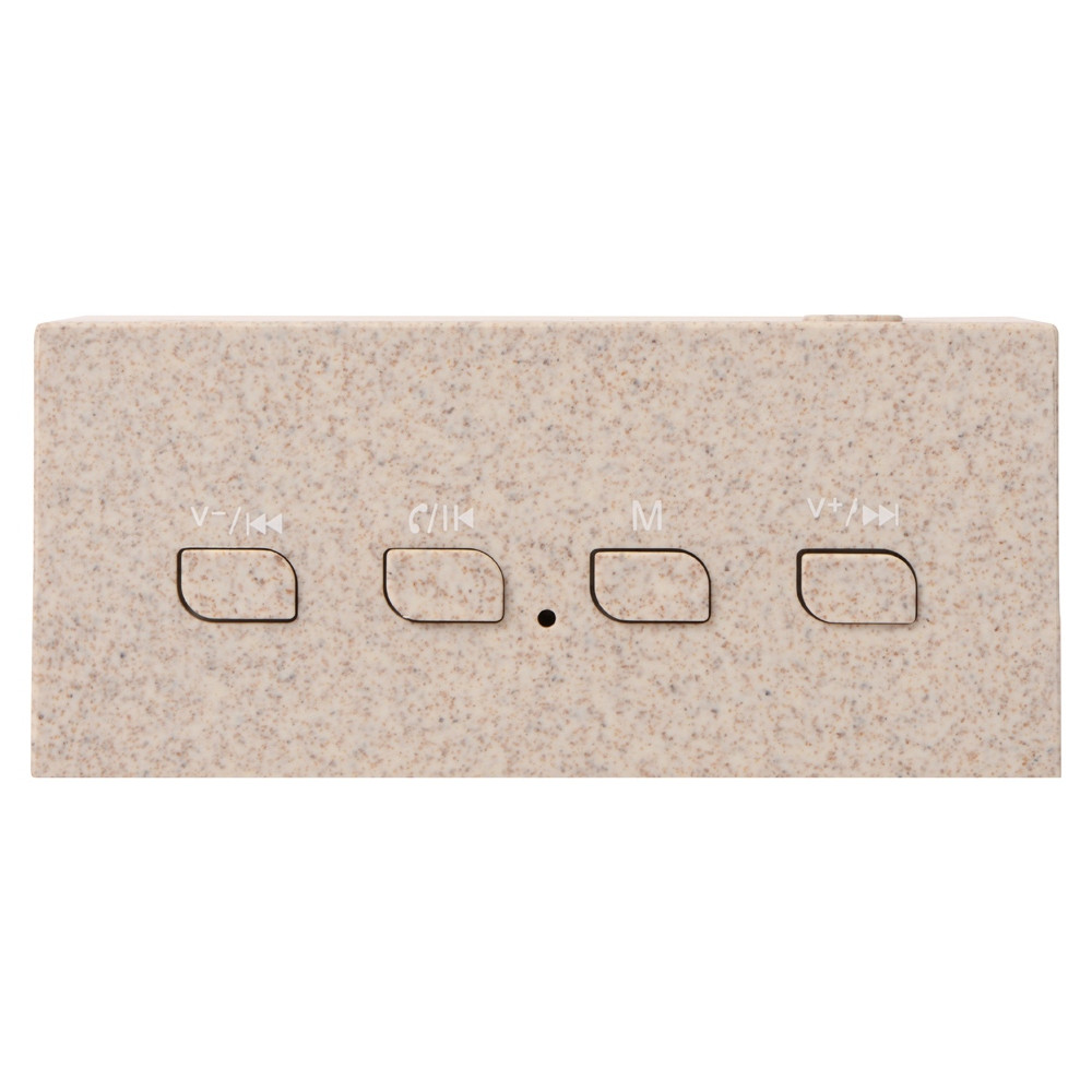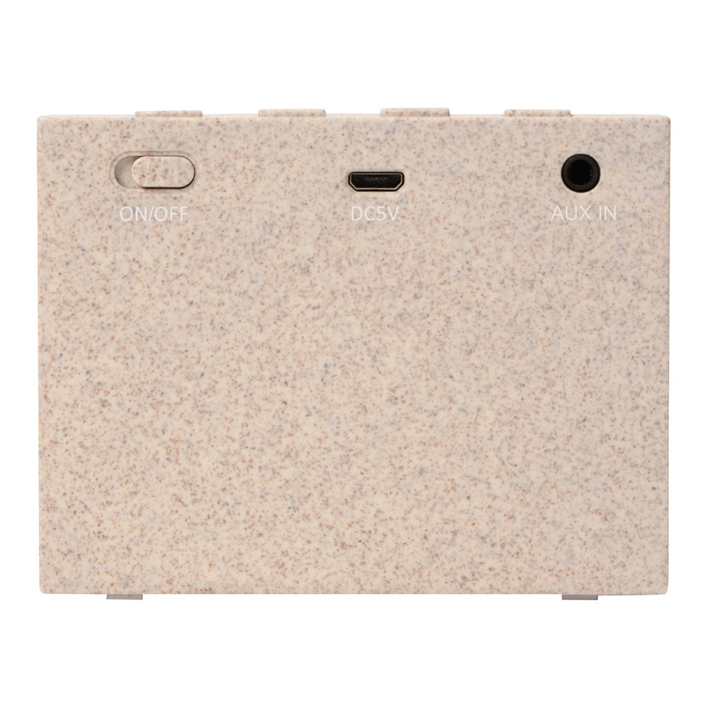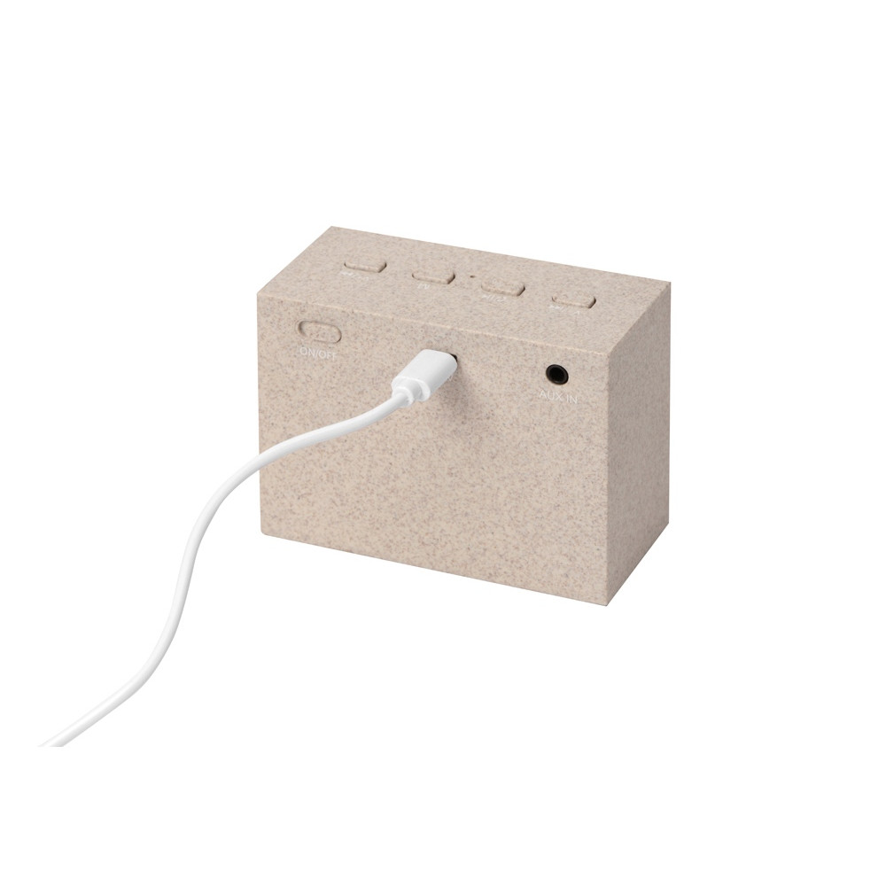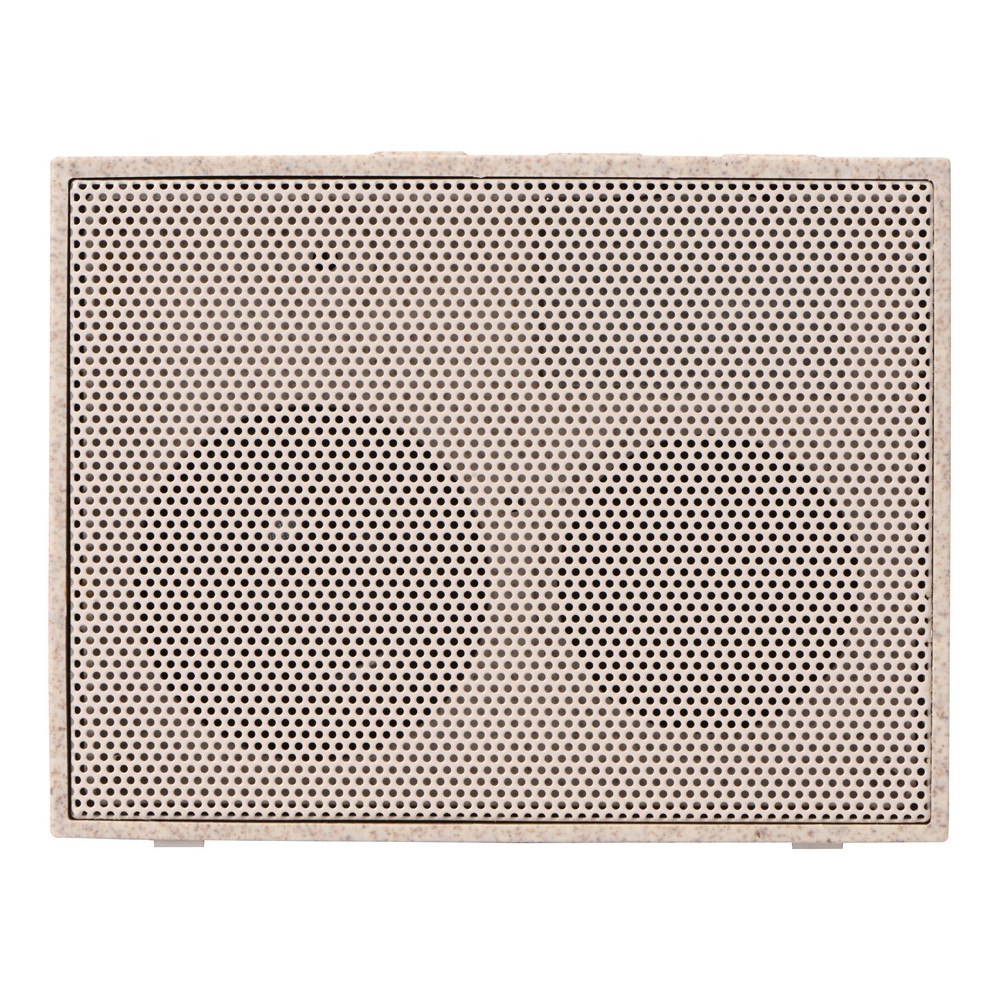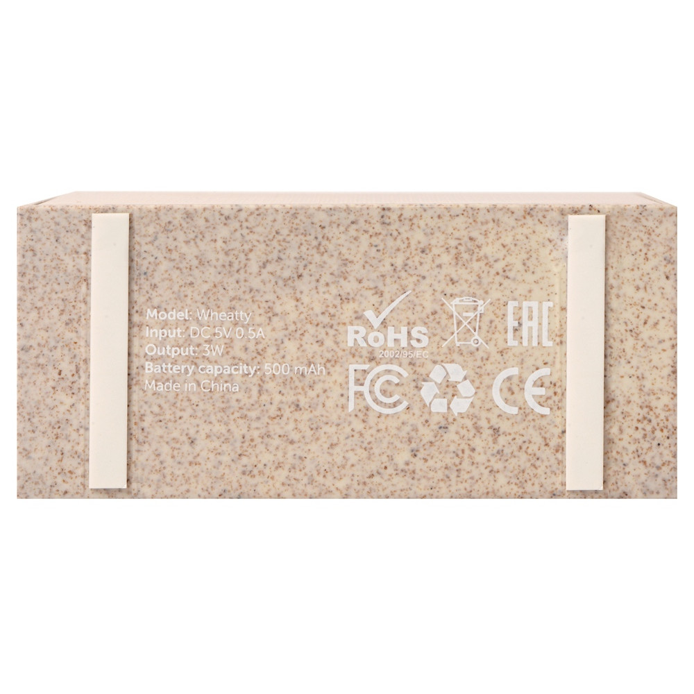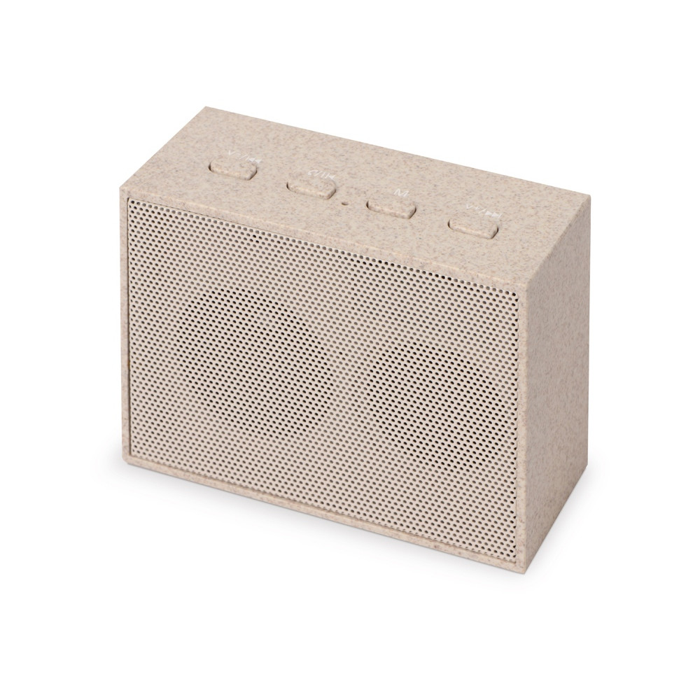 Беспроводная колонка Wheatty на 35% состоит из переработанной пшеничной соломы, что является положительным примером сокращения производства и потребления пластика в мире. Воспроизводит музыку в течение 3-х часов. Мощность 3 Вт. В колонке предусмотрены кнопки управления и линейный вход (AUX). Компактная колонка с быстрым подключением (Bluetooth 5.0). Поставляется в крафт упаковке из переработанной бумаги.