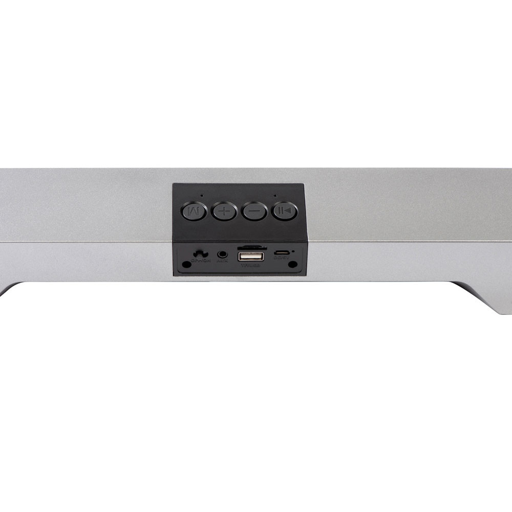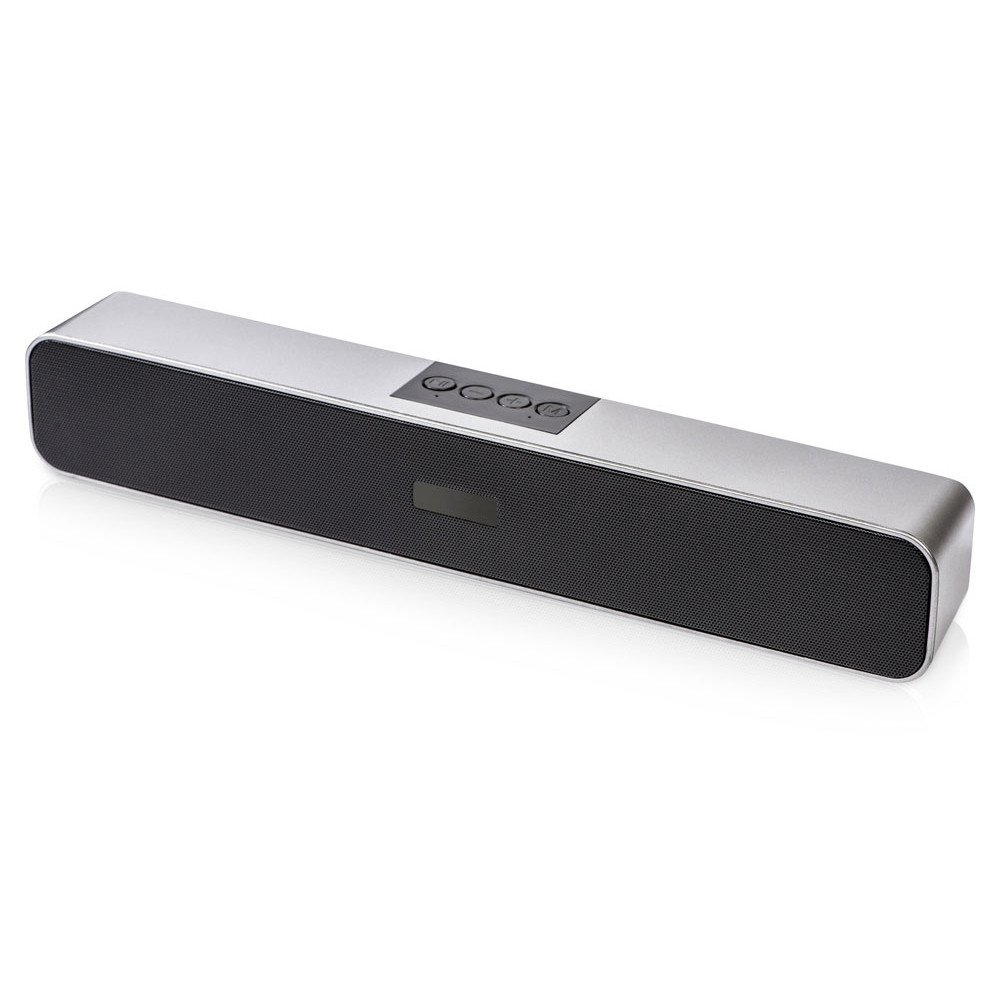 Портативная стереоколонка имеет два динамика по 3 Вт каждый, которые стереофонически распределяют звук. Саундбар воспроизводит музыку с USB-флешки и с SD-карты, а также по Bluetooth.